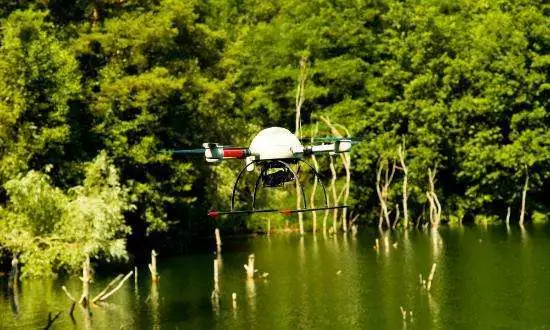 多旋翼無人機具有良好的穩定性和操控性,定位準確、起降靈活,安全性高,可在其上搭載盛水容器和抽水裝置,根據匹配的位置信息點,飛行到湖中央上空后,在距湖面以上兩米空中進行取水。這樣有利于節約成本,而且工作效率高,能夠快速及時的發現湖水質量問題。